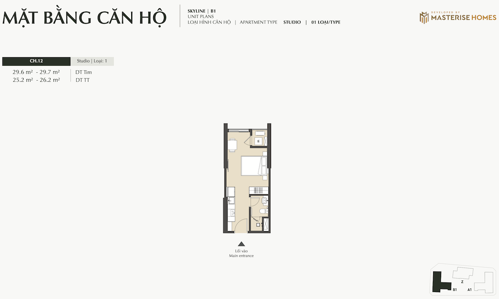 – Studio: Phù hợp cho người độc thân hoặc các nhà đầu tư cho thuê.