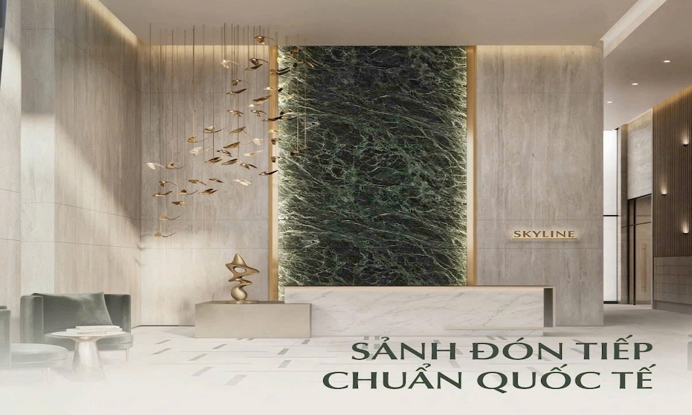 – Sảnh đón khách sang trọng: Sảnh căn hộ được thiết kế với phong cách “Sang trọng & Tinh tế”, mang đến ấn tượng mạnh mẽ ngay từ khi bước vào, tạo cảm giác về một không gian sống đẳng cấp. Các hình ảnh cho thấy sảnh có quầy lễ tân đá cẩm thạch, đèn chùm nghệ thuật và khu vực chờ rộng rãi, tiện nghi.