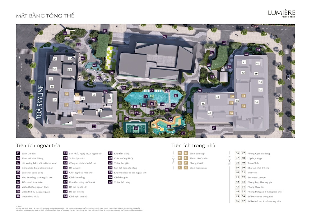 Tổng thể, hệ thống tiện ích tại Lumiere Prime Hills Cổ Loa được quy hoạch bài bản và đồng bộ, không chỉ đáp ứng nhu cầu thiết yếu mà còn nâng cao chất lượng cuộc sống, mang đến những trải nghiệm độc đáo và đẳng cấp cho cư dân. Sự phong phú của các tiện ích cũng là một yếu tố quan trọng thu hút các nhà đầu tư và người mua nhà muốn tìm kiếm một không gian sống vượt trội tại Hà Nội.