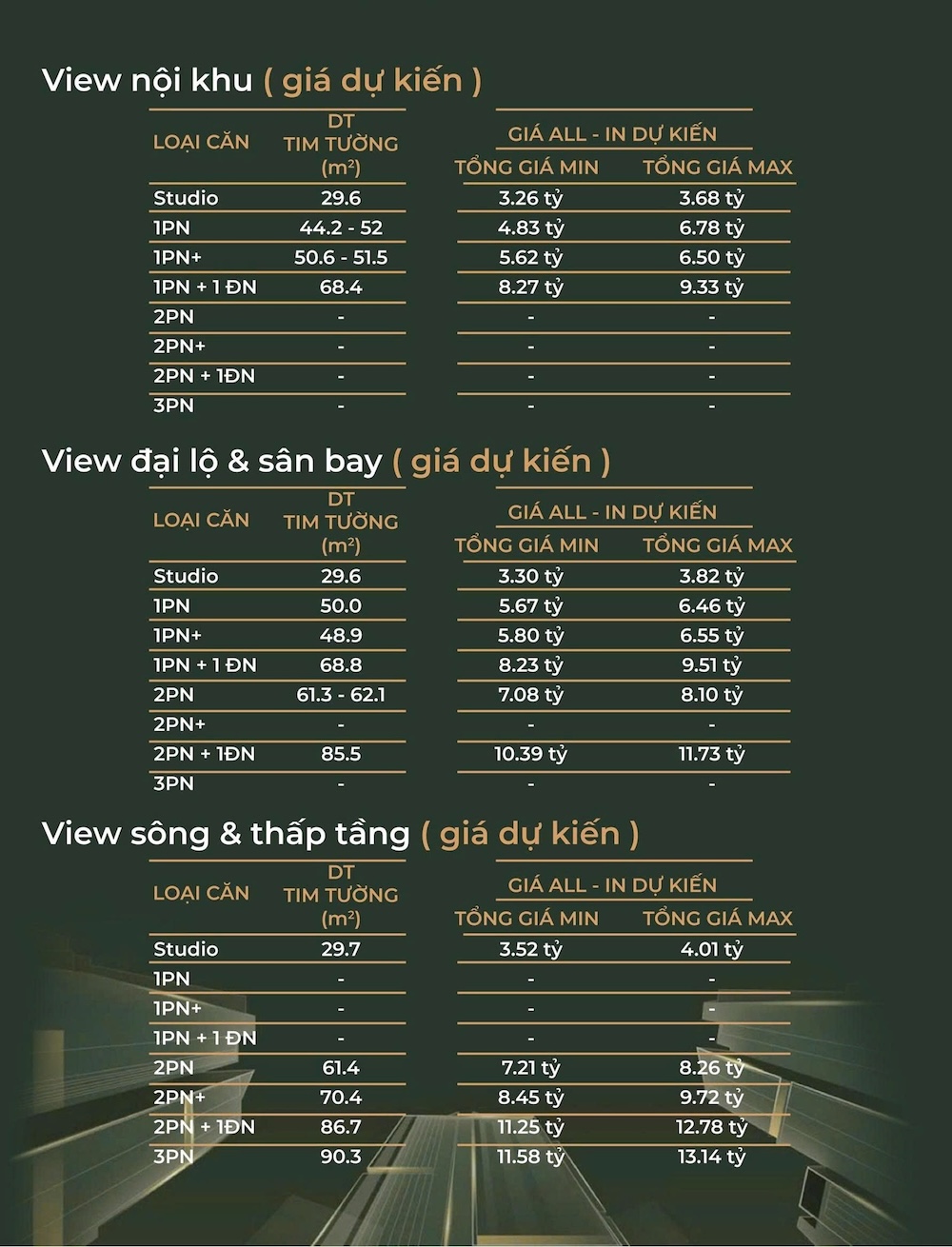 – Mức giá 120 triệu/m² có thể áp dụng cho các căn hộ có diện tích nhỏ hơn (Studio, 1PN) hoặc ở tầng thấp, view không quá đặc biệt.