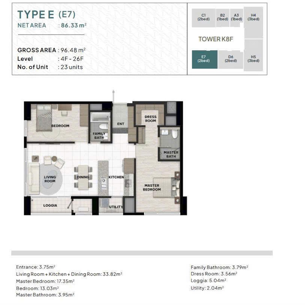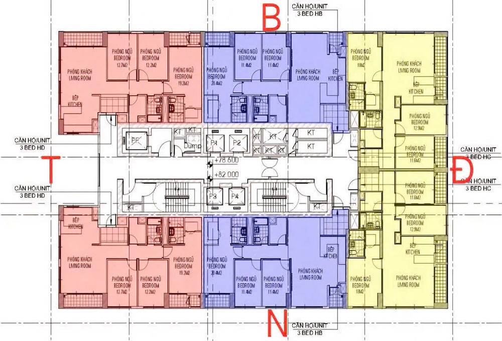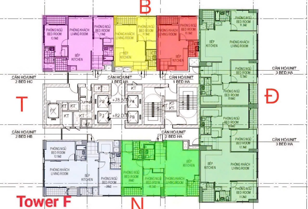 – 2 phòng ngủ: 76–86m² – lựa chọn phổ biến cho gia đình trẻ, tối ưu không gian sinh hoạt và ánh sáng tự nhiên.