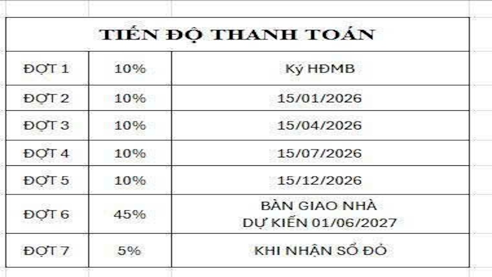 Dự án mở bán với hỗ trợ va.y v.ốn 70% trong 18–24 tháng, vốn tự có 30%, cùng chính sách bàn giao nội thất cao cấp, giúp khách hàng dễ dàng tiếp cận và giảm áp lực tài chính. Đây là giải pháp tối ưu cho cả người mua để ở và nhà đầu tư.